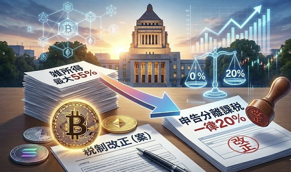 昨日、報じられた「政府・与党が暗号資産(仮想通貨)の申告分離課税(一律20%)への変更検討」のニュース。 仮想通貨所得の税負担減が、いよいよ現実味を帯びてきました。